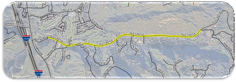 Project Overview: The Valley Center Municipal Water District is replacing approximately 11,000 linear feet of existing 12-inch diameter cement-mortar lined and coated steel potable waterline with a new 12-inch diameter polyvinyl chloride (PVC) potable waterline. This work also includes replacing and upgrading all related valves and appurtenances. All construction will take place along Old Castle Road, between Old Highway 395 and Pamoosa Lane. This project will play an important role in upgrading the service lines and ensuring the continuation of reliable water in your service area.